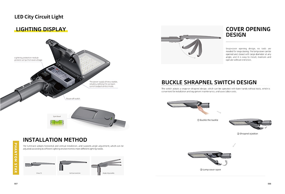 led城市道路燈採用卡扣式彈片設計,無需工具,徒手即可操作,方便安裝和設備維護,節省人力成本。